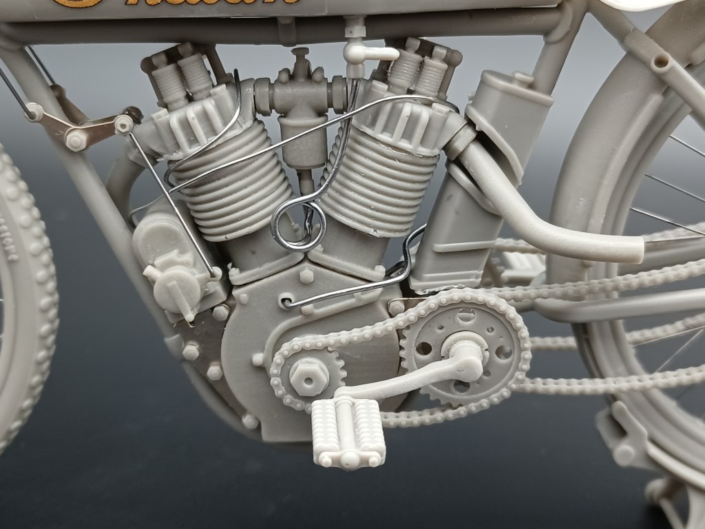 -different rear head and oil tank depending on the configuration chosen for the exhausts - chains in resin, or in photoengraving and resin